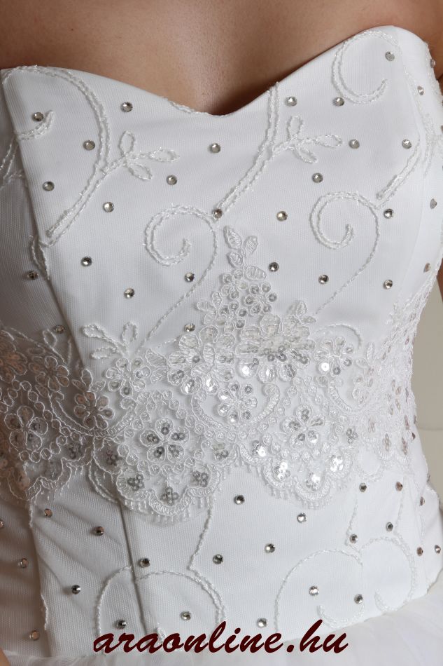 Szalonunkban csak vadonatúj esküvői ruhákat kínálunk eladásra. Áraink eladási árak, melyek tartalmazzák a ruhát, az abroncsot, egy alsószoknyát, és a menyasszonyi ruha méretre készítését/méretre igazítást. A menyasszonyi ruhát igény szerint elkészítjük fehér, csont vagy krém színben is. Mindegyik ruhánk kérhető uszályos változatban is, ennek feláráról kérem, érdeklődjön elérhetőségeinken. Ízlés szerint az alapanyagok, díszítések megváltoztathatóak. A ruha felsőrésze kérhető cipzár-fűző vagy V-betétes fűzős variációban is. Ha teheti, keressen fel minket személyesen is, szívesen segítünk a megfelelő menyasszonyi ruha, a legideálisabb fazon és a legtökéletesebb esküvői kiegészítők megtalálásában. Saját modelljeink mellett bármilyen egyéni elképzelést is megvalósítunk.