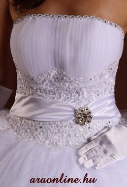 Szalonunkban csak vadonatúj esküvői ruhákat kínálunk eladásra. Áraink eladási árak, melyek tartalmazzák a ruhát, az abroncsot, egy alsószoknyát, és a menyasszonyi ruha méretre készítését/méretre igazítást. A menyasszonyi ruhát igény szerint elkészítjük fehér, csont vagy krém színben is. Mindegyik ruhánk kérhető uszályos változatban is, ennek feláráról kérem, érdeklődjön elérhetőségeinken. Ízlés szerint az alapanyagok, díszítések megváltoztathatóak. A ruha felsőrésze kérhető cipzár-fűző vagy V-betétes –fűzős variációban is. Ha teheti, keressen fel minket személyesen is, szívesen segítünk a megfelelő menyasszonyi ruha, a legideálisabb fazon és a legtökéletesebb esküvői kiegészítők megtalálásában. Saját modelljeink mellett bármilyen egyéni elképzelést is megvalósítunk.