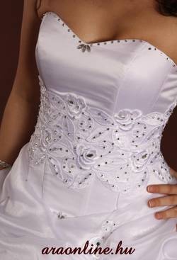 Szalonunkban csak vadonatúj esküvői ruhákat kínálunk eladásra. Áraink eladási árak, melyek tartalmazzák a ruhát, az abroncsot, egy alsószoknyát, és a menyasszonyi ruha méretre készítését/méretre igazítást. A menyasszonyi ruhát igény szerint elkészítjük fehér, csont vagy krém színben is. Mindegyik ruhánk kérhető uszályos változatban is, ennek feláráról kérem, érdeklődjön elérhetőségeinken. Ízlés szerint az alapanyagok, díszítések megváltoztathatóak. A ruha felsőrésze kérhető cipzár-fűző vagy V-betétes –fűzős variációban is. Ha teheti, keressen fel minket személyesen is, szívesen segítünk a megfelelő menyasszonyi ruha, a legideálisabb fazon és a legtökéletesebb esküvői kiegészítők megtalálásában. Saját modelljeink mellett bármilyen egyéni elképzelést is megvalósítunk.